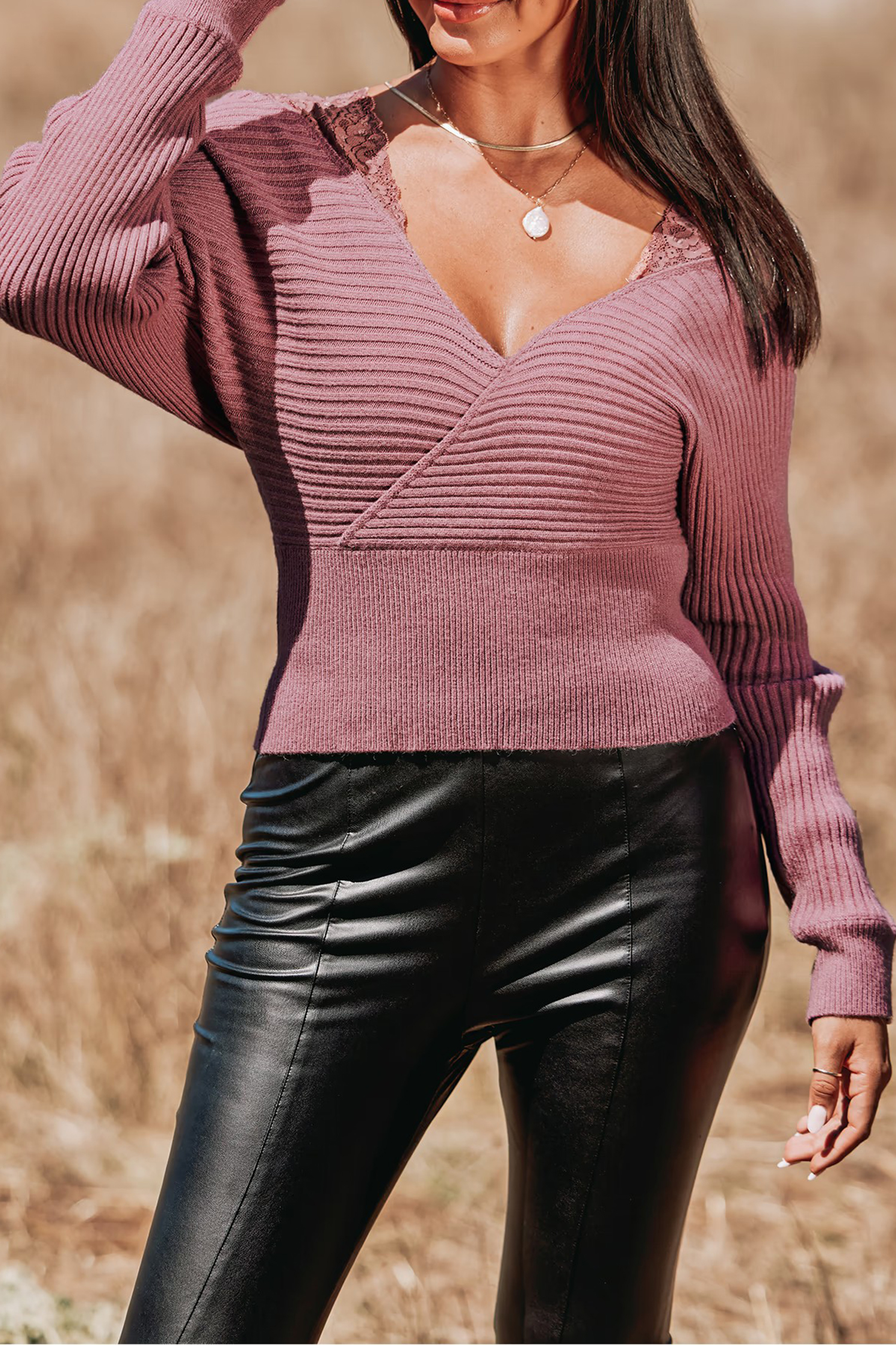 - Surplice neckline