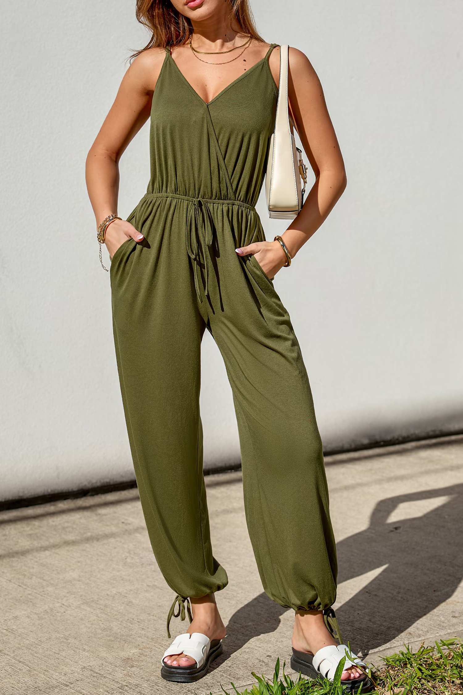 Stay chic and comfy in our Forest Green Drawstring Jumpsuit. With its rich green hue and adjustable drawstring waist, this jumpsuit is perfect for a stylish, yet laid-back look.