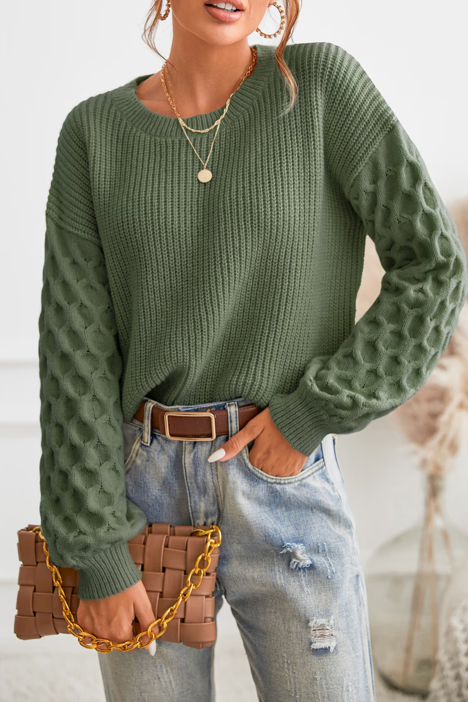 Craving a cozy yet playful piece? The Green Honeycomb Puff Sleeve Sweater is just what you need! With its fun puff sleeves and textured honeycomb pattern, this sweater adds a touch of whimsy to your wardrobe.