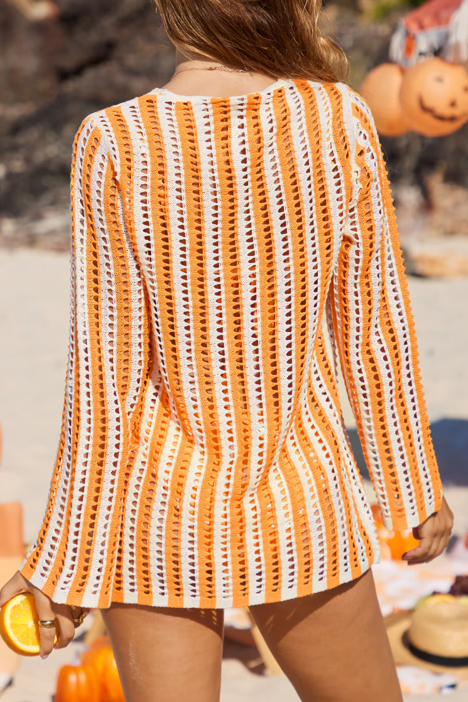 Add a fun twist to your look with this Striped Cutout Tie Front Cardigan! The playful cutout details and tie-front design make it a stylish layering piece for any casual day.