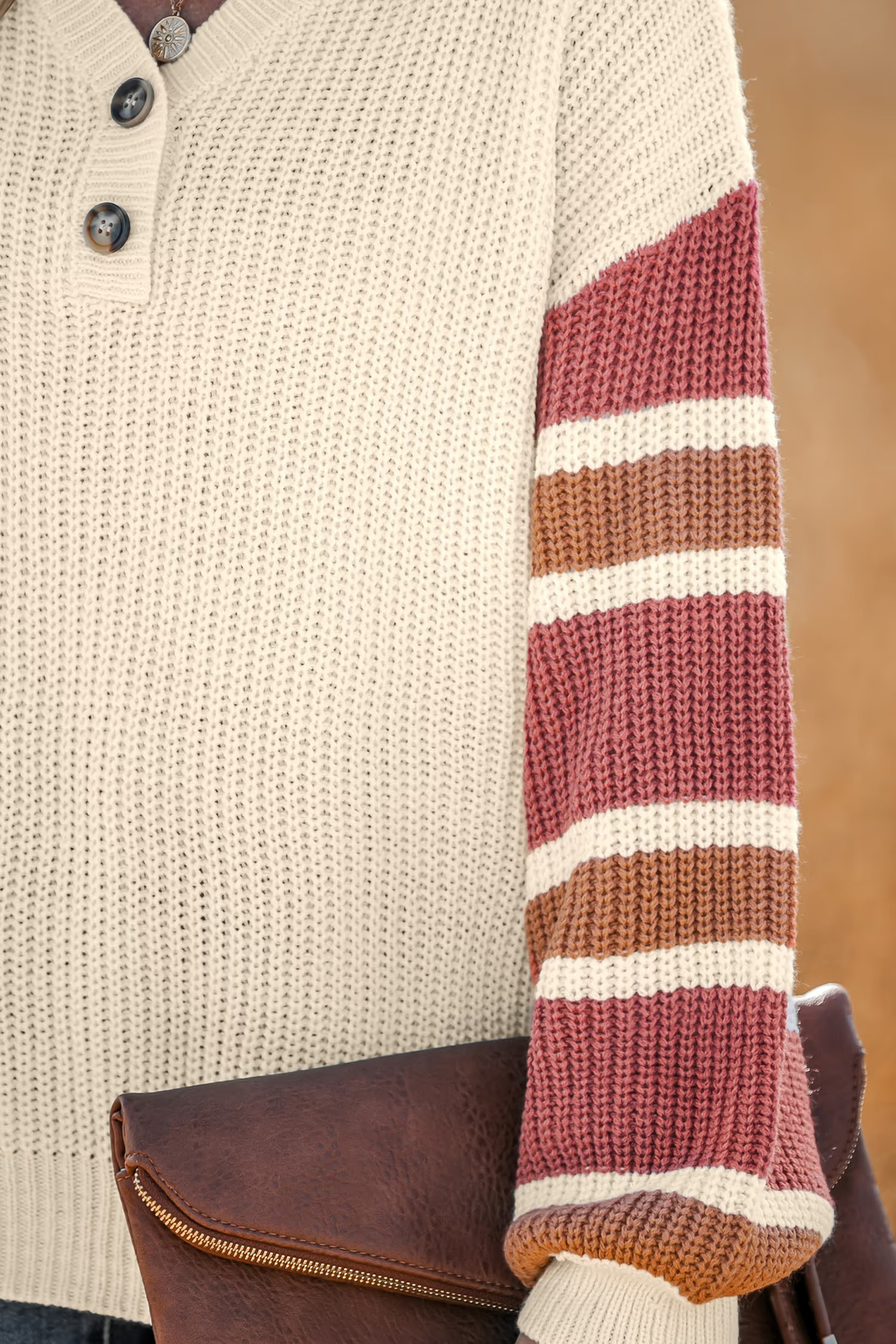 Elevate your casual look with our V-Neck Buttoned Striped Sweater. The stylish striped pattern and relaxed v-neck come together to create a comfortable and fashionable piece that's perfect for adding a touch of flair to your ensemble.