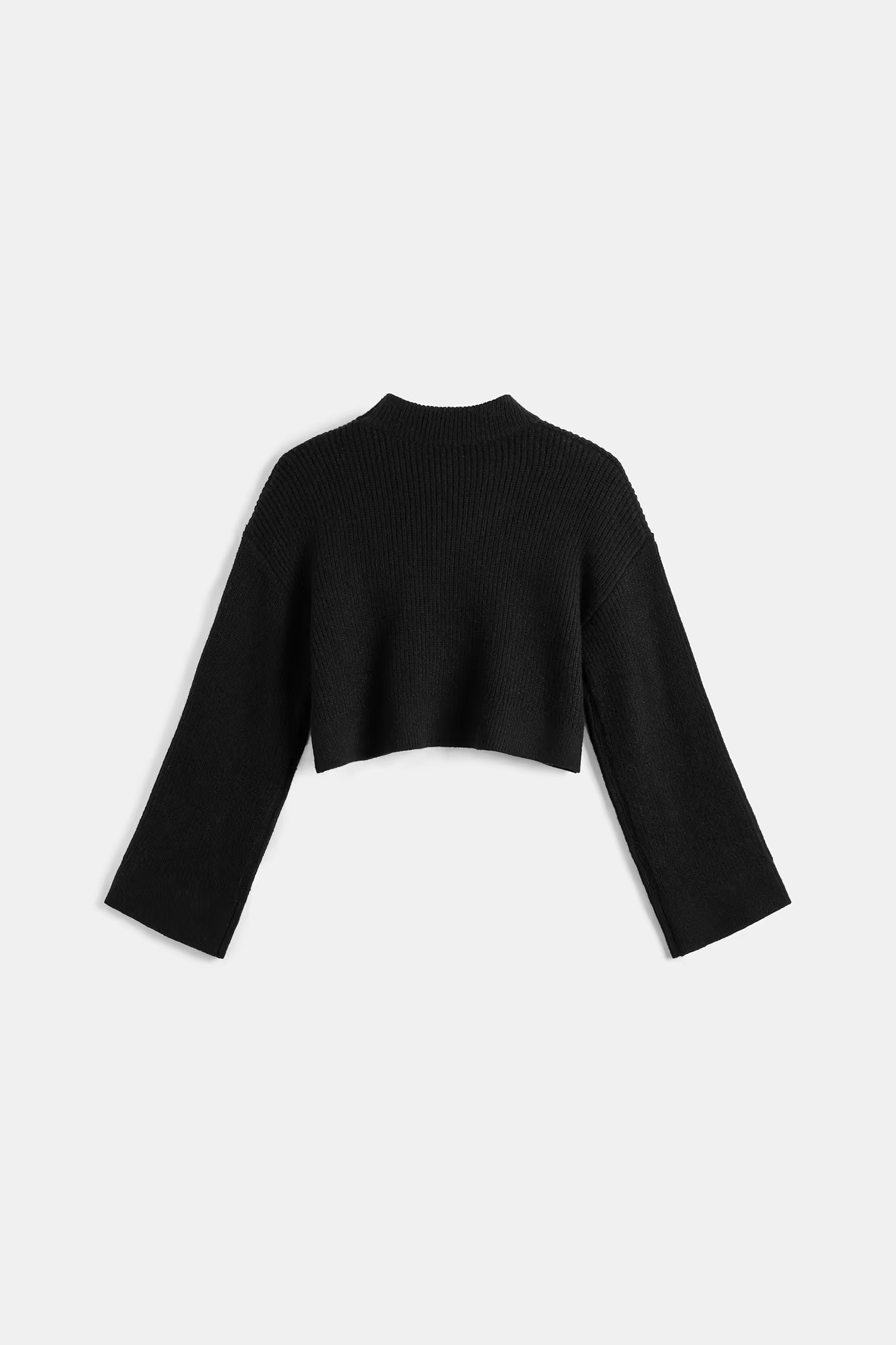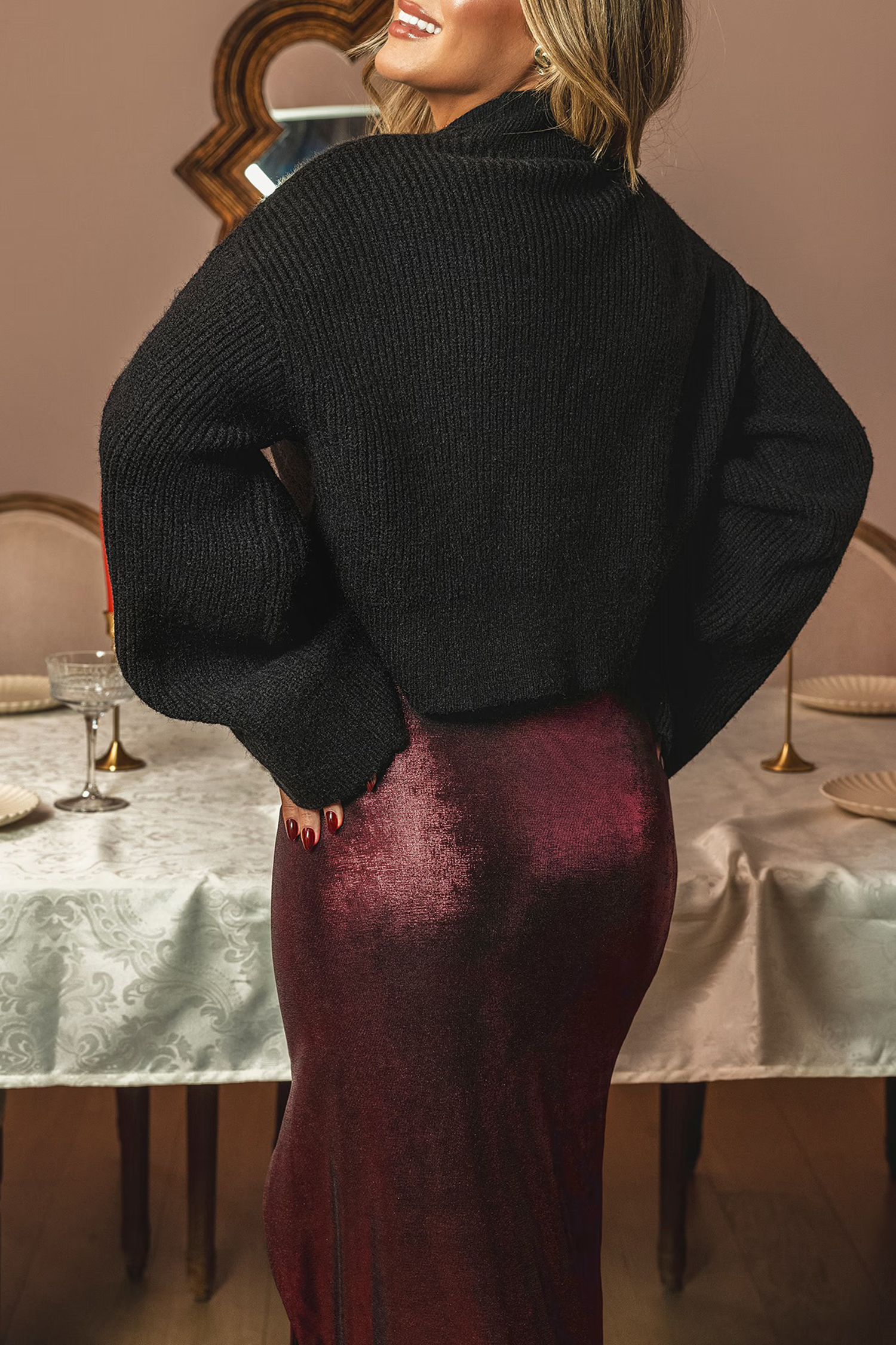 Get ready to turn heads in the Dark Night High Neck Flared Sleeve Sweater. This cozy piece features a stylish high neck that keeps you warm, while the flared sleeves add a touch of drama. The deep, rich hue makes it perfect for layering or wearing on its own.